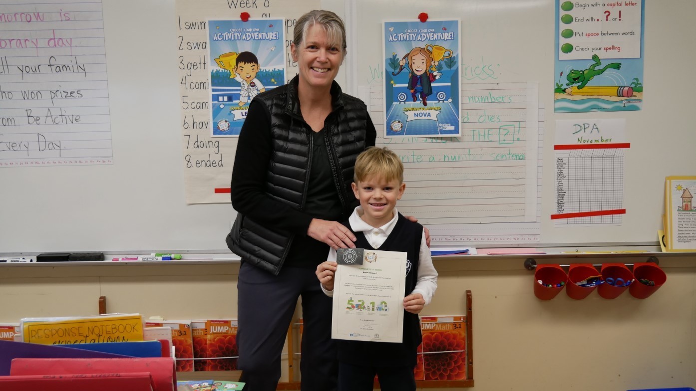 Many students participated in this challenge from all across BC with each participant's name put into a draw for various prizes. So it's pretty amazing that 5 winners were drawn from our grade 3 class! Keegan McKague, Emma Montgomery, Isabella Allnutt, and one other student all won animated posters featuring their own self-portraits showing them being active, and Brook Breuer won a bike helmet.